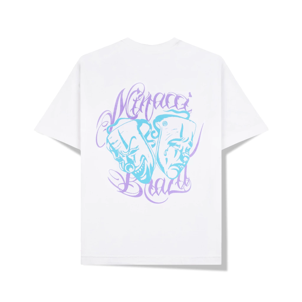 A camiseta MASCHERE é uma releitura de um dos clássicos da Minacci. Inspirada no drop “Máscaras”, que marcou nossa história com três versões diferentes, ela traz de volta a emblemática logo Minacci no peito e a estampa atemporal “chora agora, ri depois", um símbolo da nossa essência desde o começo.